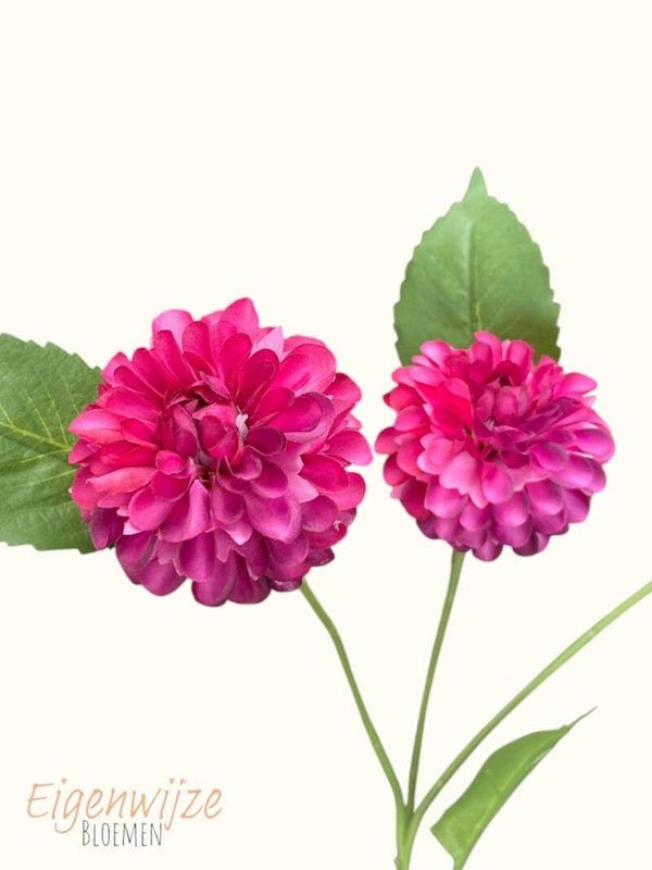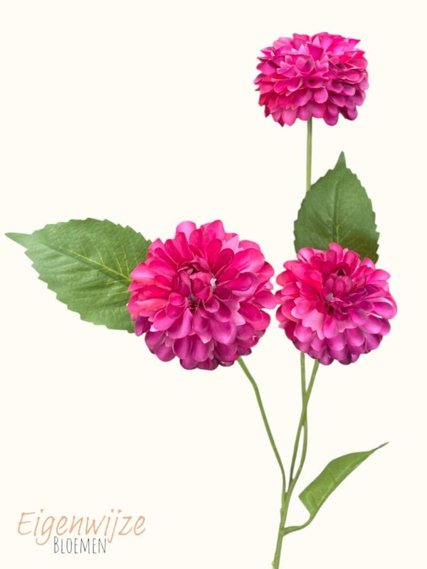 Mooie fuchsia kleur Dahlia. 3 bloemen van elk ongeveer 7 cm doorsnede. Hoogte 65 cm